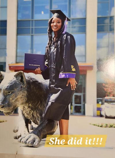She did it!!! Kaliyah fought hard against the odds and what society said her life would be. She turned her dreams into goals, set an action plan, and checked off the boxes, one by one. Statistically, only 53% of teen moms graduate from high school, and less than 2% graduate from college by age 30. We proud to say that Kaliyah accomplished both by the age of 22! Her journey began with Lovie's Pearls in October 2019 as a part of our first group of teen moms from Klein ISD). She was one of the first recipients of our Scholarship Program, and we were delighted to award her a scholarship each year through her 4-year collegiate journey. Kaliyah wants to become a Paralegal, and one day, go to law school to later practice family law. We have no doubt she will continue to reach her goals!